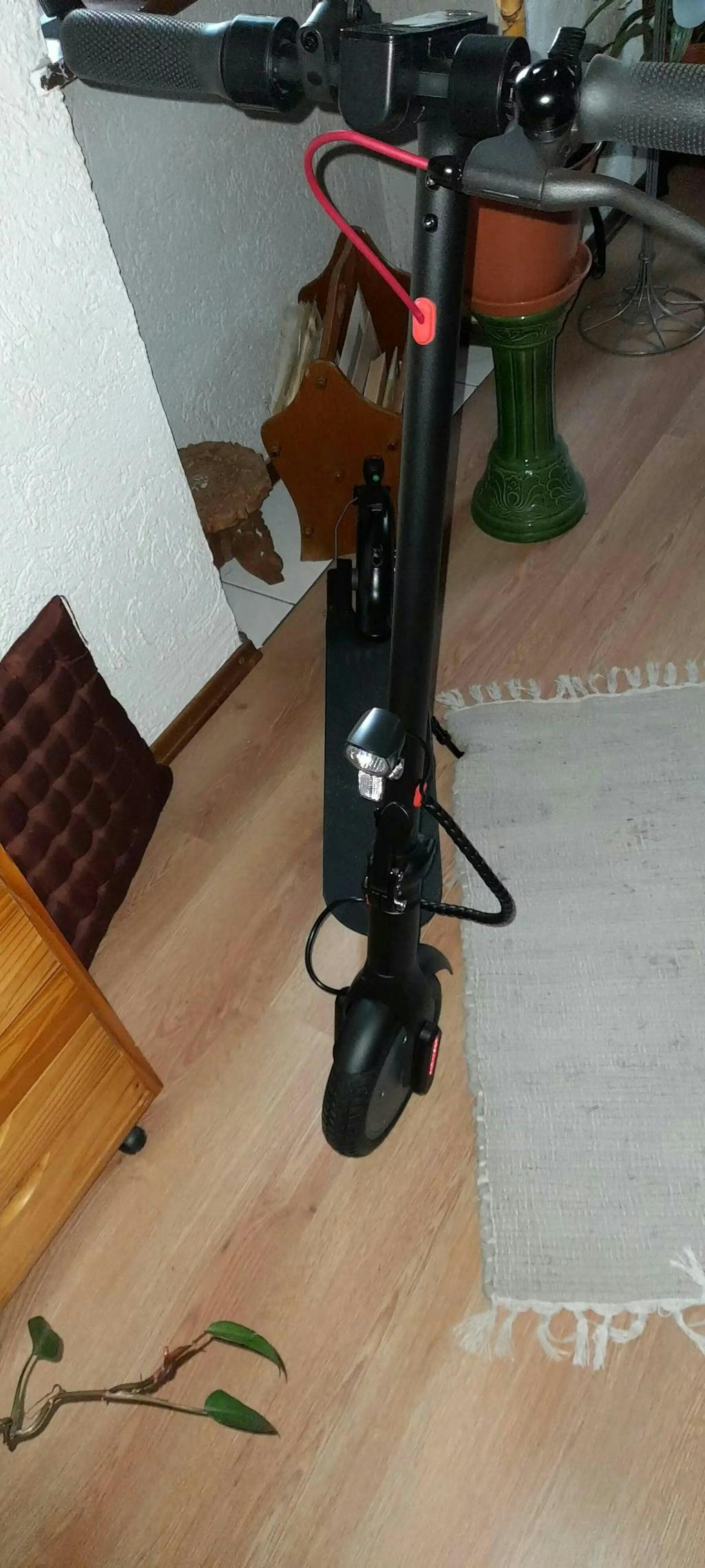 Drücke bei eingeschaltetem Roller kurz auf die Power-Taste unter dem Display, um das Frontlicht einzuschalten.