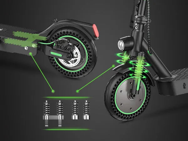 Les amortisseurs avant et arrière atténuent les bosses et assurent une conduite confortable sur les routes urbaines irrégulières.