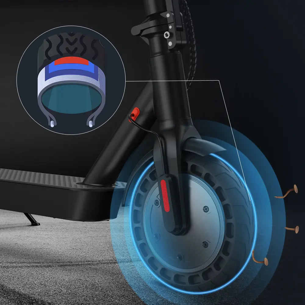 Les pneus pleins durables et sans entretien offrent un excellent équilibre entre confort et résistance aux crevaisons pour les surfaces urbaines.