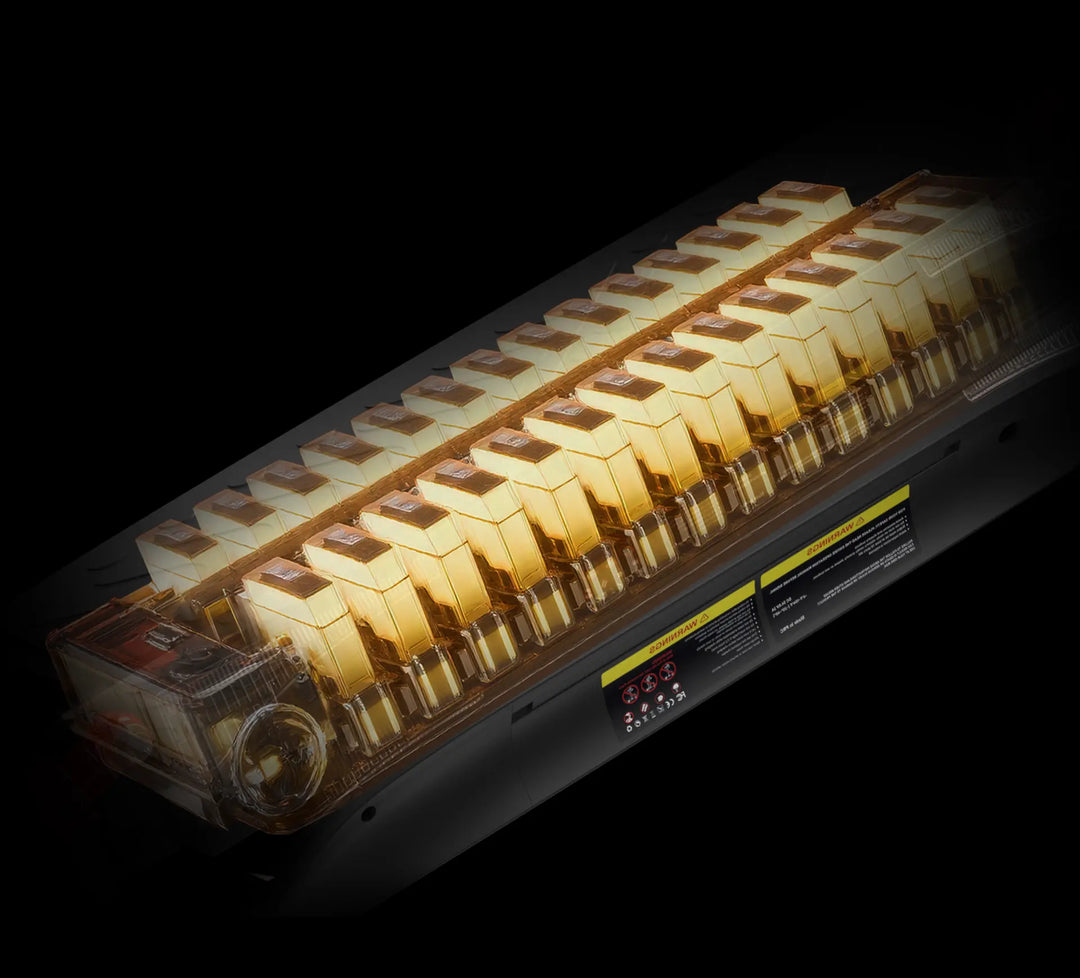 Generous battery capacity provides up to 70km of riding range on a single charge.