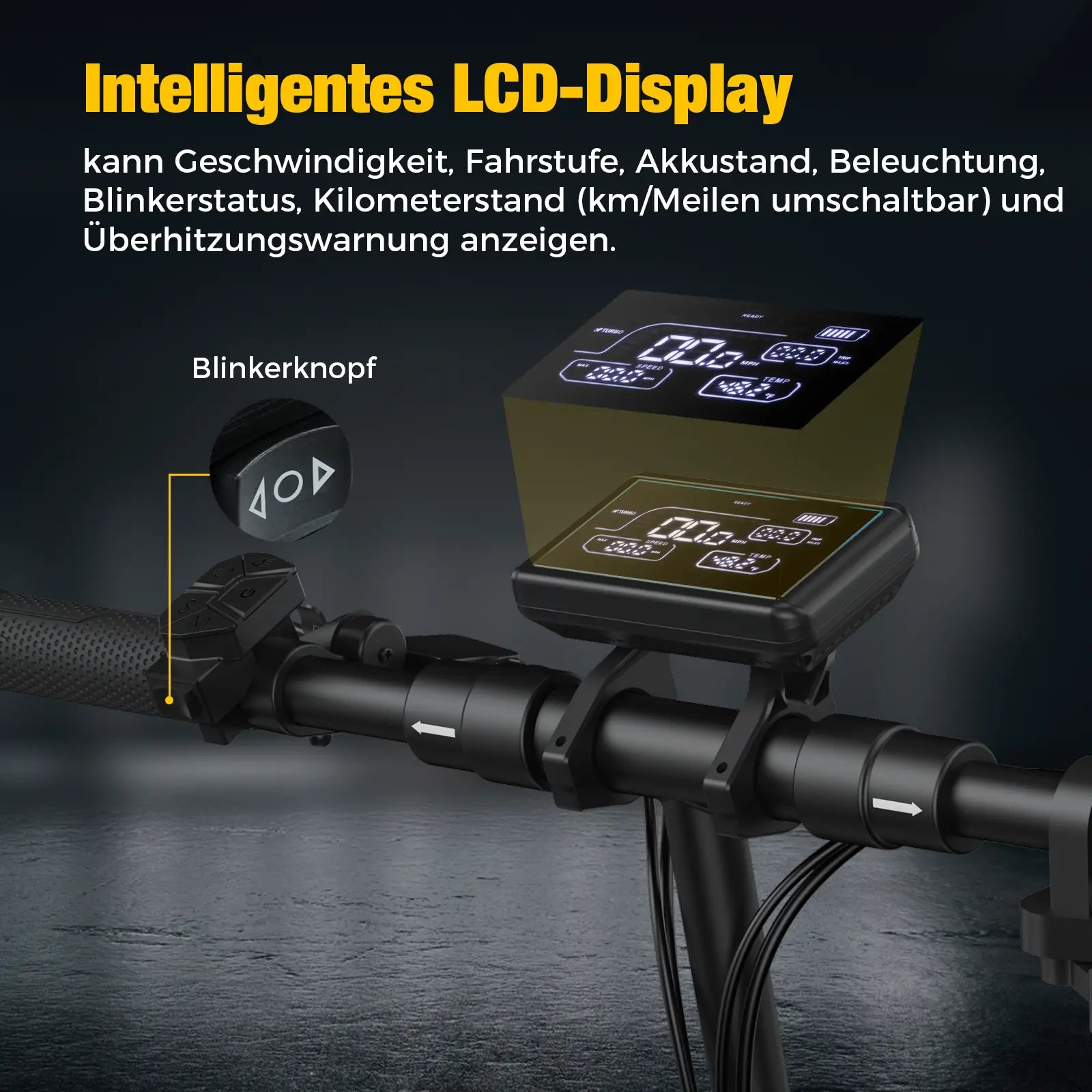 Connect via mobile app and monitor real-time riding data on the clear LCD screen for smarter control.