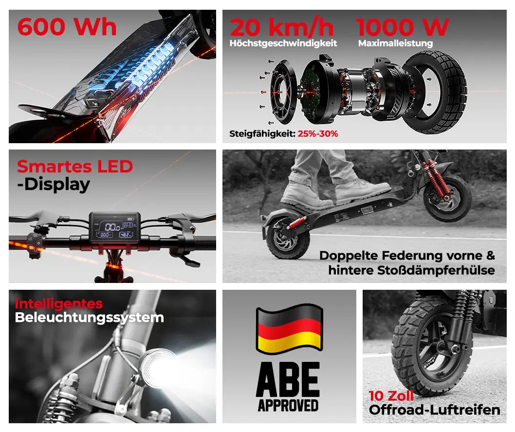 Finbike T4 Off-Road Electric Scooter 48V 12.5Ah Battery with ABE - FinBike.com