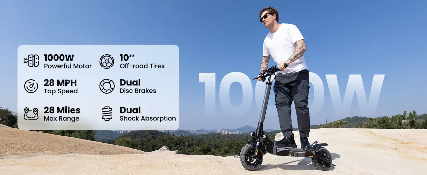 Finbike W9 Electric Scooter 48V 1000W Motor 10" Off-Road Tires