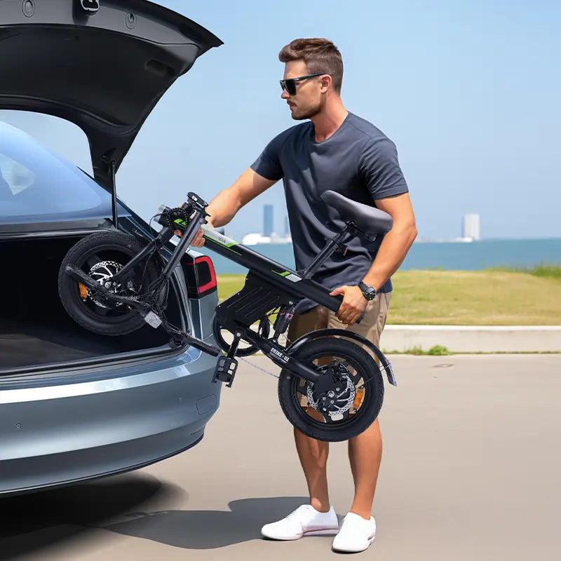 The U4 E-Bike features a fully foldable design, making it easy to store in your car's trunk. Its compact size ensures effortless transport, perfect for on-the-go use.