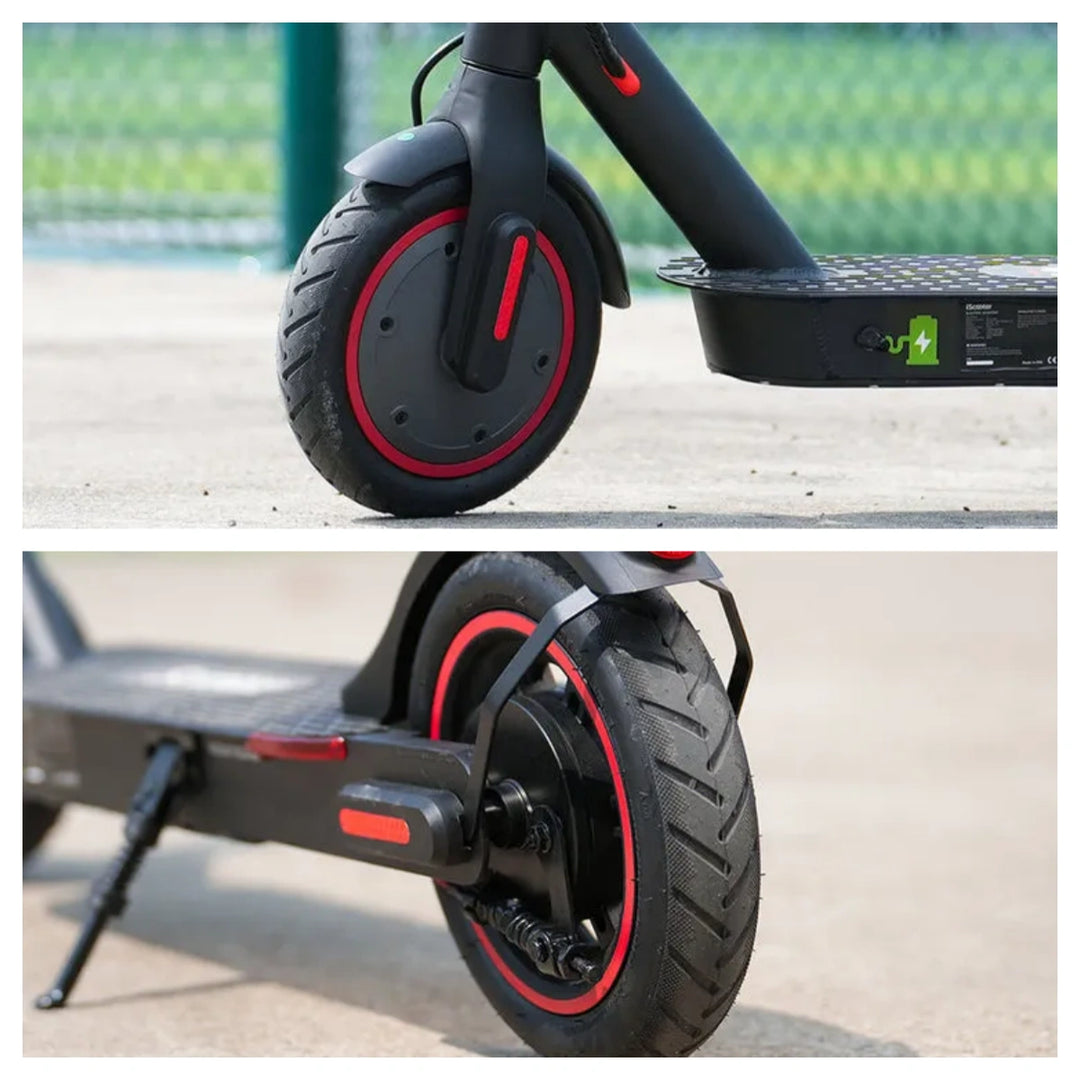 Vzduchom plnené pneumatiky poskytujú lepšie tlmenie nárazov a priľnavosť pre pohodlnú jazdu po mestských uliciach.