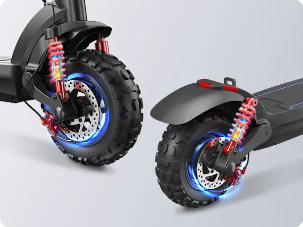 Predné vidlicové návleky a zadné pružinové tlmiče spolupracujú na pohlcovaní nárazov a pádov – zabezpečujúc hladšiu jazdu na akomkoľvek teréne.